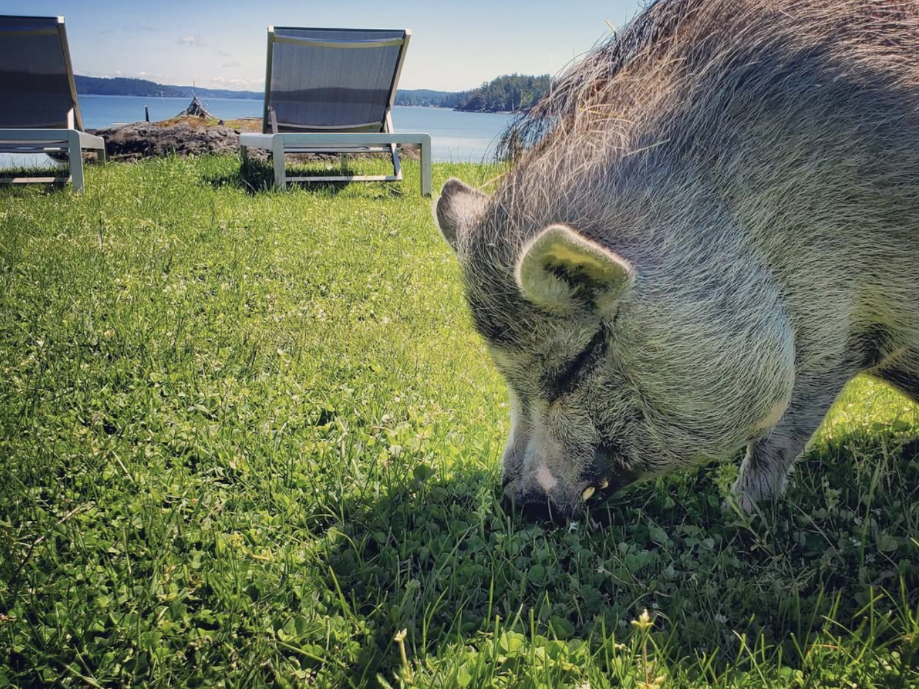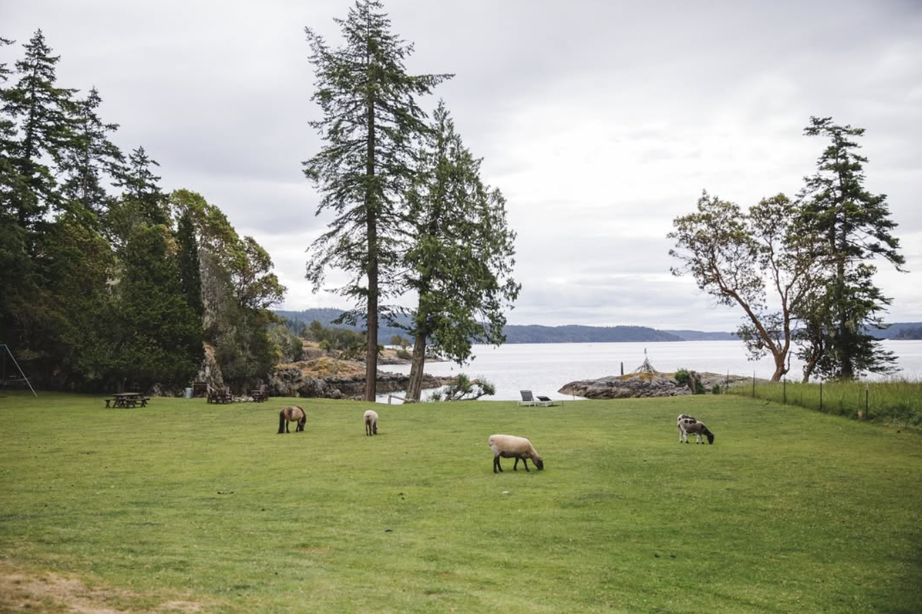 Wake up to the sounds of the gentle waves lapping on the shore and the scent of the sea. There are four acres of gardens, orchards, lawn and beach to explore. Spend your days playing with the rescue farm animals, beach combing, rowing out to an island to picnic, picking what’s ripe in the garden, taking a nap in a hammock or gazing up at the stars as you soak in the hot tub.